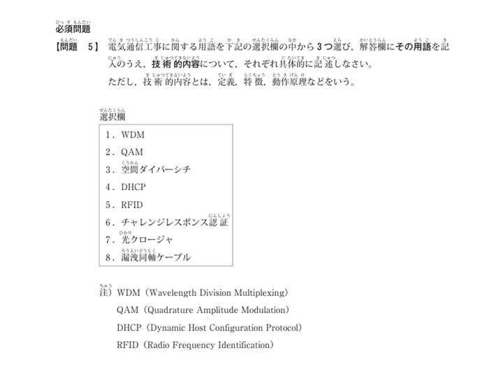 必須問題は、施工管理とコンクリートに関する記述式問題が出題されます。