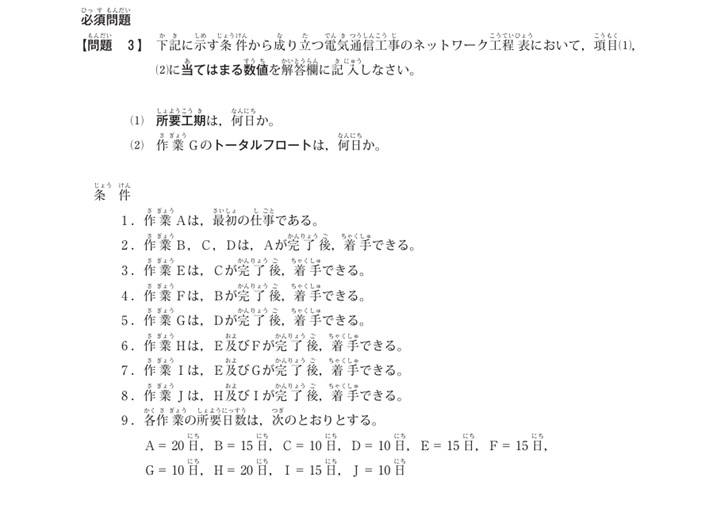 施工管理の問題では、工程管理や品質管理、安全管理などの基本概念を問われることが多いです。